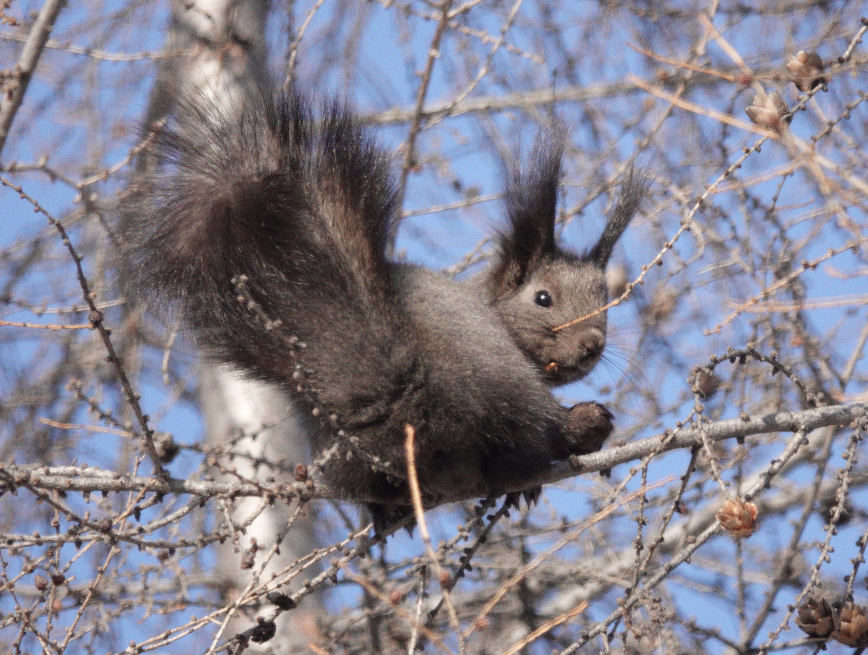 Результаты зимних учётов животных оказались весьма интересными. Численность обыкновенной белки в Каларском районе обычно не высока. В национальном парке «Кодар» на разных участках в последние годы отмечался рост плотности этого вида и учёты 2026-го года показали максимальные показатели за все годы существования парка: 45-66 белок на 1000 га, а по югу Чарской котловины, где обычны сосняки - 146 зверьков на 1000 га. Увеличению численности белки, по-видимому, способствовало существенное снижение плотности соболя: всего 0.5-3.4 особи на 100 га. Хотя белка не является основной добычей этого хищника, но он при случае не откажется от такой лакомой добычи.